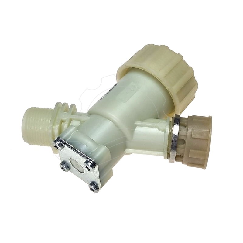 Filtr skośny niemieckiego producenta A.u.K. Müller, stosowany w myjniach Ehrle. Montowany jest przed pompą wysokociśnieniową w celu zabezpieczenia przed zanieczyszczeniami stałymi. Filtr posiada wyjmowany wkład filtrujący z siatką ze stali nierdzewnej.