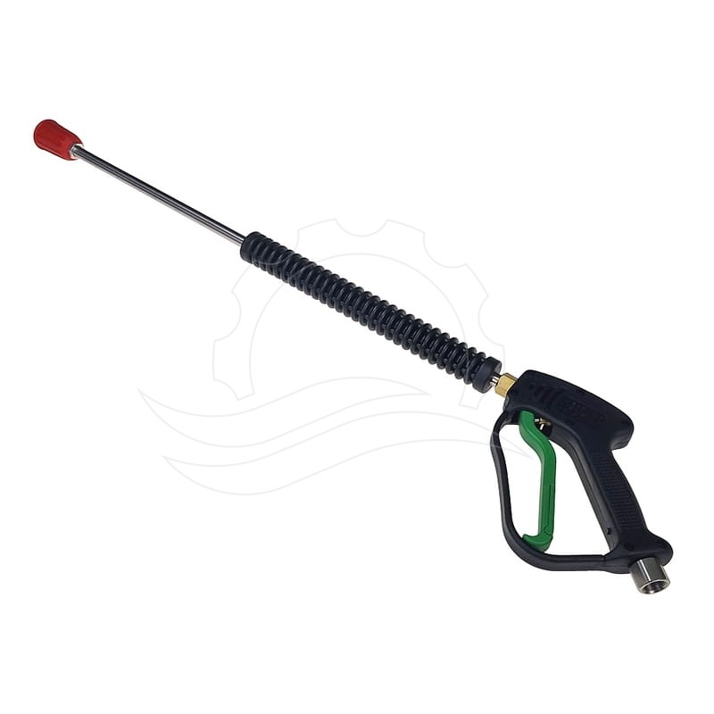Lanca do mycia zasadniczego MV20 o długości 600mm z pistoletem Aura (freeze stop) i osłoną dyszy. Zestaw nie zawiera dyszy. Lanca może być prosta lub zagięta. Taki komplet z dyszą ceramiczną 65.56 był montowany fabrycznie w myjniach Ehrle sprzed 2013 roku.