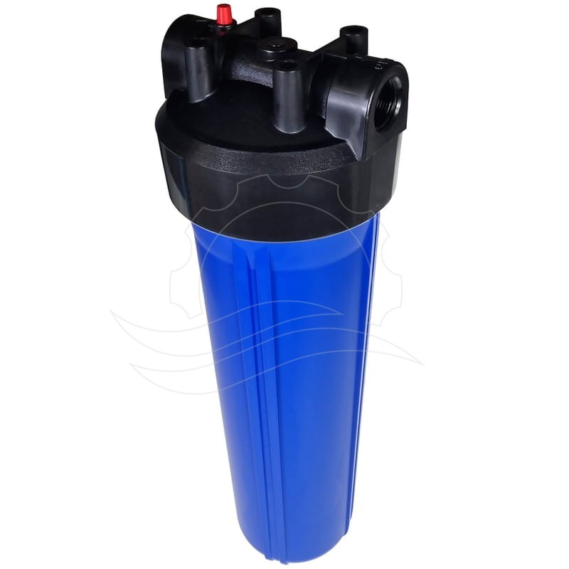 Obudowa filtra wody Big Blue 20'' z niebieskim korpusem. Obudowy tego typu montowane są w instalacjach, gdzie wymagana jest duża wydajność. Przyłącze z gwintem 1".