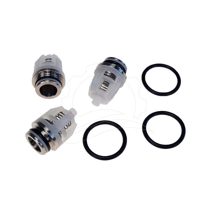Zestaw trzech kompletnych zaworów wraz z o-ringami korka do pomp Cat 340, Cat 350, Cat 5CP. Wykonanie standardowe z uszczelnieniami NBR.